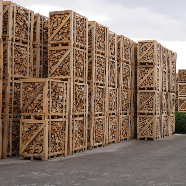 -Jest zapakowane w skrzynio-paletę lub karton co umożliwia składowanie drewna w bardzo wygodny sposób.